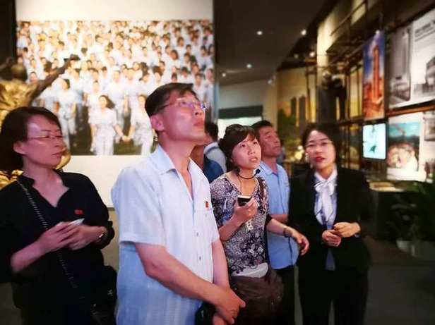 朝鲜新闻代表团在深圳博物馆听取深圳发展历程的情况介绍 马玉安 摄