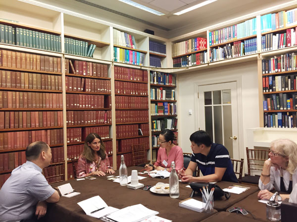 交流活动期间,中国新闻代表团先后访问纽约和华盛顿两地,走访了美国国务院、美国外交关系协会、彭博新闻社美国总部、《赫芬顿邮报》总部、美国商会、美国东西方中心华盛顿办公室、彼得森国际经济研究所等单位,参加了美国东西方中心举办的中美记者对话会,与彼特•柯伊、马特•唐森德、雷米、谢烨等彭博社资深记者进行了工作研讨,与美国商会亚洲区高级副会长查尔斯•弗里曼、彼得森国际经济研究所研究员马丁•索兹帕分别进行了座谈。中国新闻代表团与美国智库和主流媒体广泛接触,深入了解当前中美经贸关系面临的问题,并积极探讨媒体应如何在缓解冲突方面发挥有效作用和影响。