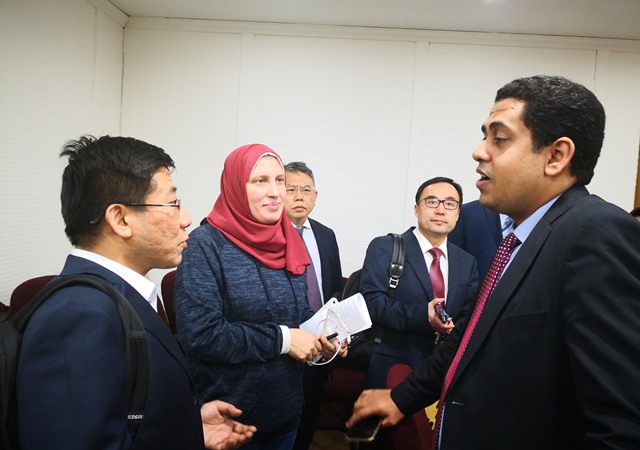 中国新闻代表团成员在埃及《消息报》与媒体同行互动交流 马玉安 摄