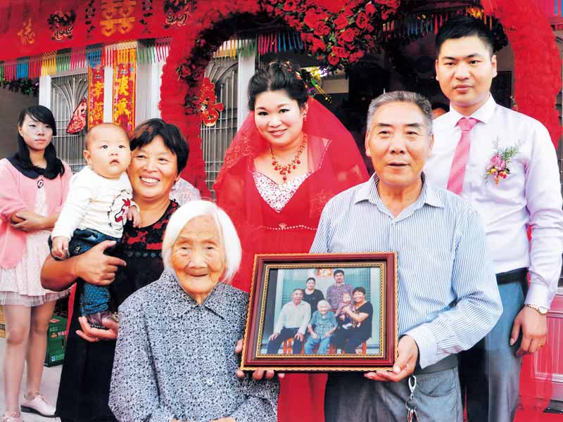 2014年国庆节,叶兴法一家四代同堂的“全家福”。 徐永辉摄于2014年