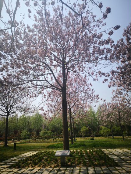 午饭被安排在焦裕禄干部学院食堂。饭后步行路过校园中的一片焦桐林,习近平同志2009年来兰考考察时种植的泡桐树已是枝繁叶茂、桐花烂漫,人们习惯称之为“习桐”。学院门口过马路正对的便是“焦桐”。这两棵泡桐树时隔46年后的“相逢”相向而生,纯属必然,因为她们象征着我们党伟大精神的传承,生生不息。