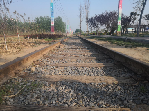 离开此地前,看到了地上铺设的铁轨,问当地干部,他说是当时毛主席来视察黄河时修的。如今已过去了67年,但铁轨和枕木都十分坚固,并没有半个多世纪的沧桑之感。当地干部告诉我们,他们计划用这一铁轨发展小火车旅游。