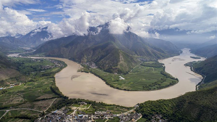 这是7月21日无人机拍摄的长江第一湾。 新华社记者 江文耀 摄