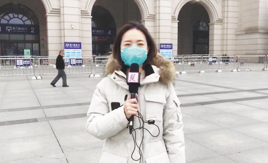 《楚天都市报》记者何婷在火车站进行现场直播。《楚天都市报》 供图