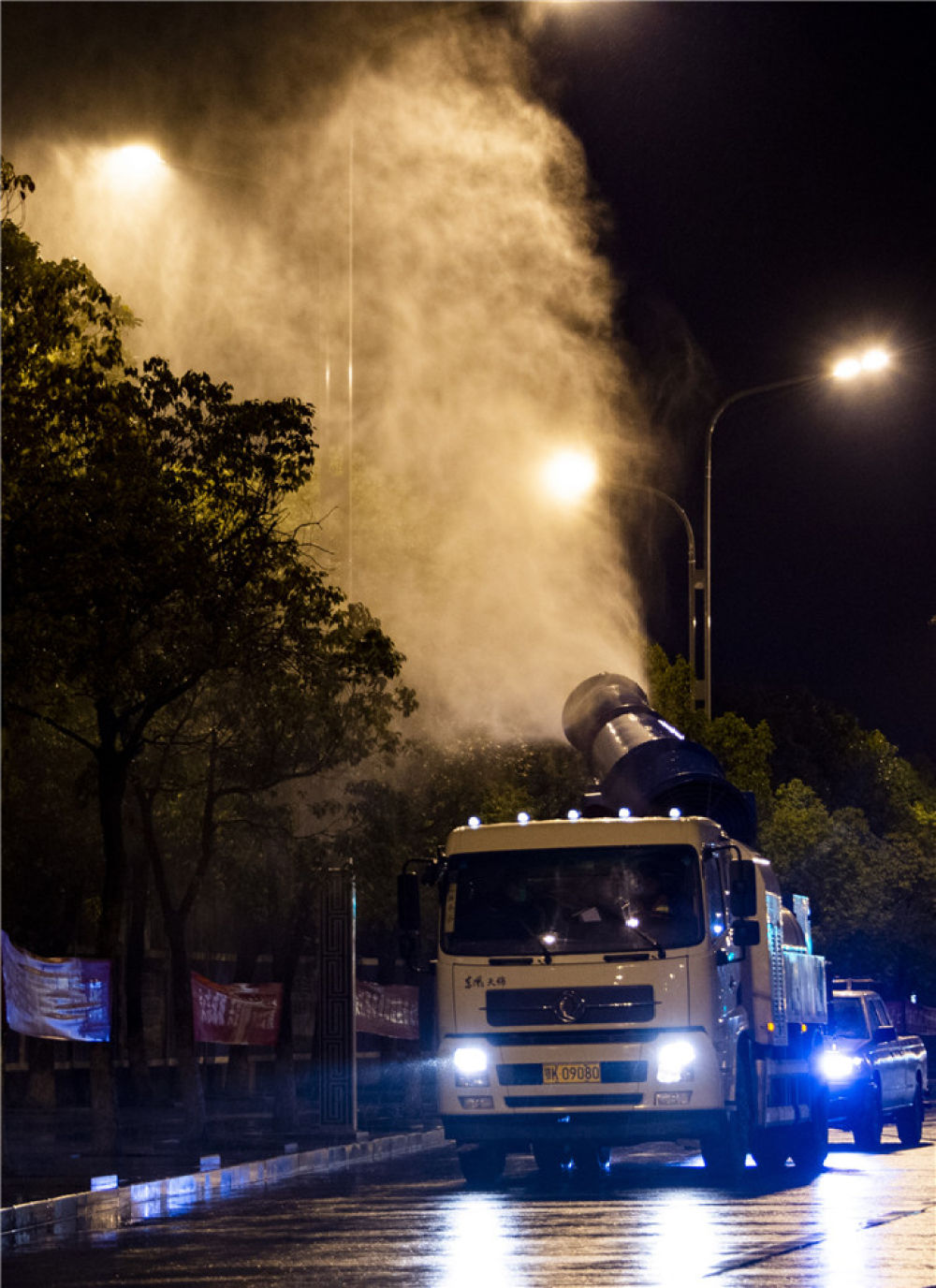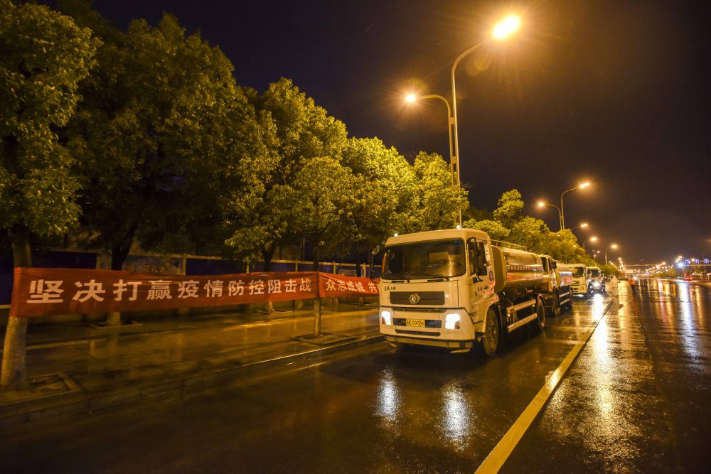 晚上9时,孝感市开始全城环境消毒。在乾坤大道上,市城管执法委副主任廖振文介绍,出动了13台洒水车、10台高压冲洗车和3台雾炮车,对全市主次干道、背街小巷、广场、公园、垃圾中转站、公共厕所等公共场所进行消毒。各县区、各部门分工负责各自管辖范围的环境消毒。第一次环境消毒在6日晚上9时至7日凌晨5时之间完成。