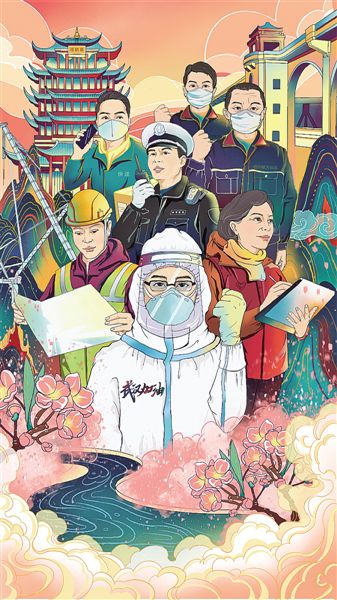 这组漫画使用手机软件创作而成,力求画面简洁、重点突出,同时展现画笔本身的味道。本报前方报道组发回的第一篇稿件配图,是武汉高层建筑亮灯鼓劲的内容。主创人员据此作画,成为该系列的开始。同时考虑到,疫情早日结束,人们春暖时节可以去武汉赏樱,因而将樱花作为组图收尾。(策划:常戍 主创:殷燕召 王斯敏)