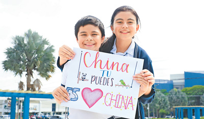 近日,萨尔瓦多儿童展示画作,表达对中国抗击新冠肺炎疫情的支持与祝福。画上写着:中国,你可以的!萨尔瓦多爱中国。亚历山大·佩纳摄(新华社发)