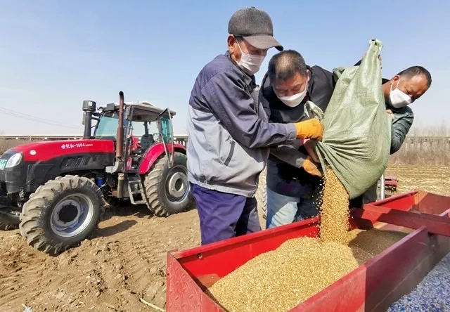 疫情防控不放松,田间地头促生产。天津市北辰区在抓好疫情防控的同时,有序推动春耕春播工作。2月23日,随着发出隆隆声的播种机将一粒粒优质麦种播种在庞嘴村的麦田里,双街镇的2000亩春小麦有序开播。今晚报记者 高莹辉 摄