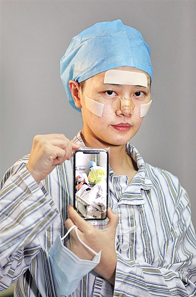 新华社记者肖艺九在武汉市第一医院隔离病房采访时的自拍照。