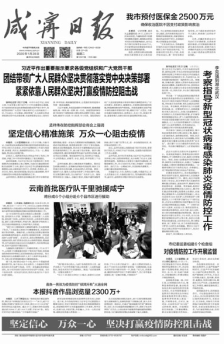 精准策划选题,突出针对性。《咸宁日报》策划推出的选题包括系列评论《万众一心 阻击疫情》《坚决打赢疫情防控人民战争》《党员站出来 党旗飘起来》等,系列报道“直击定点医院”“云南医疗队在咸宁”“疫情防控,谁在工作岗位坚守”等,为全市抗击疫情发出了最强音,凝聚了大合力。