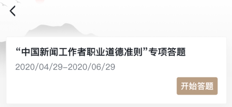 中国记协2019年12月15日发布新修订的《中国新闻工作者职业道德准则》(以下简称《准则》),在新闻界和社会各界产生良好反响。为进一步推动新闻战线学好《准则》、守好《准则》,中国记协与“学习强国”学习平台4月29日联合推出“中国新闻工作者职业道德准则”专项答题,帮助广大新闻工作者进一步了解掌握《准则》主要内容,贯彻落实到新闻采编各项工作中。