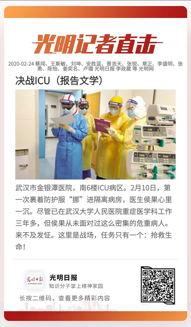 光明日报武汉一线报道组报道《我,走出方舱医院》海报