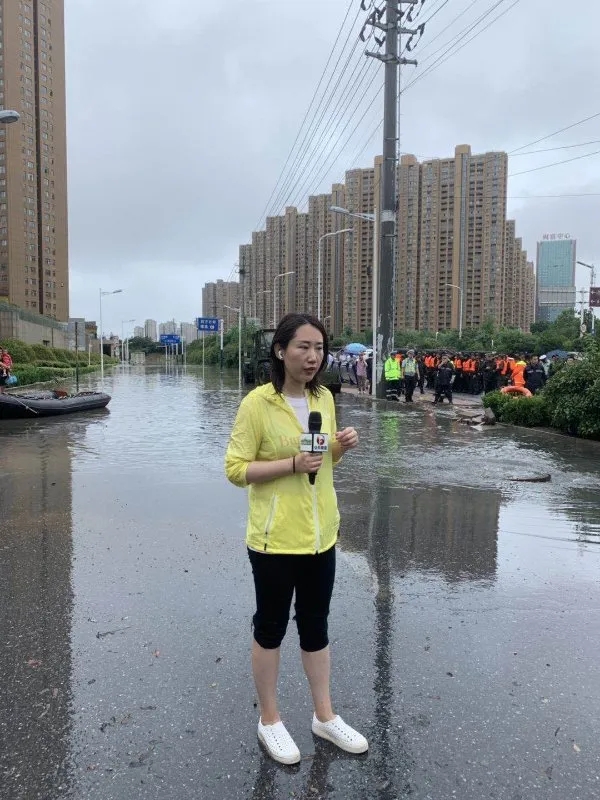 6月15日,安徽合肥普降暴雨,城区部分道路积水严重,北城部分路面车辆被淹,安徽广播电视台公共频道记者段迪、吴江、常婉月立刻前往事发地,直击抢险现场。公共频道大小屏同步直播,微直播实时观看人次达33万。图为段迪在现场进行直播。常婉月 摄