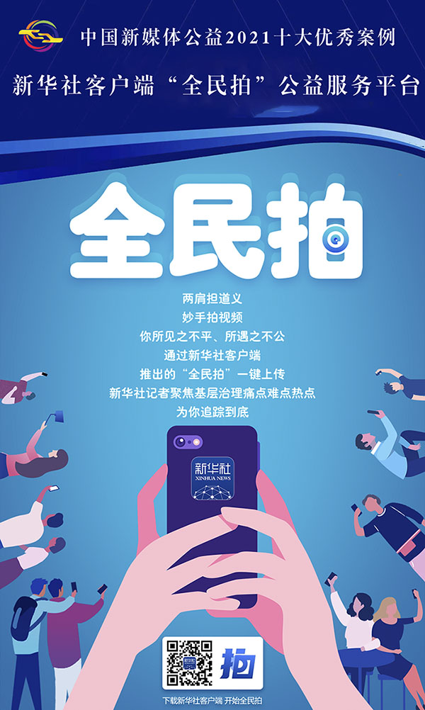 本网讯 1月21日,中国记协新媒体专业委员会发布了中国新媒体公益2021十大案例,新华社客户端“全民拍”栏目入选。