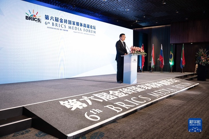 新华社约翰内斯堡8月19日电(记者刘万利 谢江)第六届金砖国家媒体高端论坛19日在南非约翰内斯堡举行。来自近30个金砖和非洲国家的约100家媒体、智库、国际组织等机构的约200名代表围绕“金砖国家与非洲:加强媒体对话,共享公正未来”的主题展开研讨,为构建金砖高质量伙伴关系、发展壮大金砖机制汇聚强大合力。