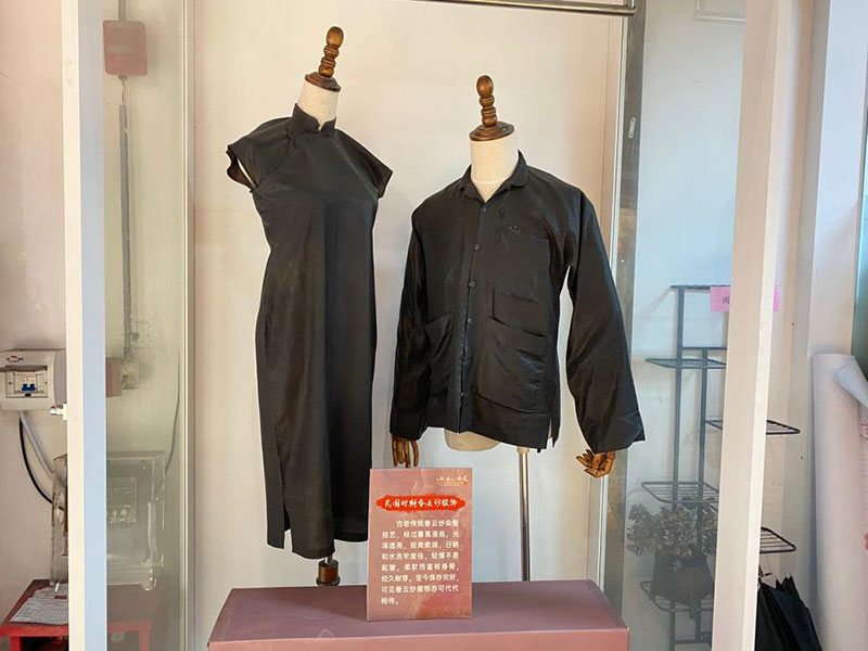 在梁珠老人大徒弟欧阳凤婷香云纱店中展示的百年香云纱