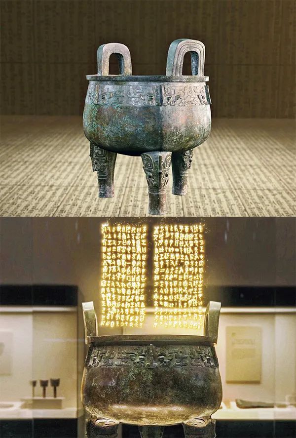 中国国家博物馆馆藏西周早期大盂鼎,高约102厘米,重153.5公斤,鼎内壁铸有铭文19行,共计291字,是记载周代历史的重要文献,是研究周代分封制与册命制度的重要史料,也是西周金文书法的杰出代表。此图是运用虚拟现实技术对大盂鼎铭文进行的数字活化展示,观众可直观真切观看大盂鼎内壁上的铭文。 中国国家博物馆供图