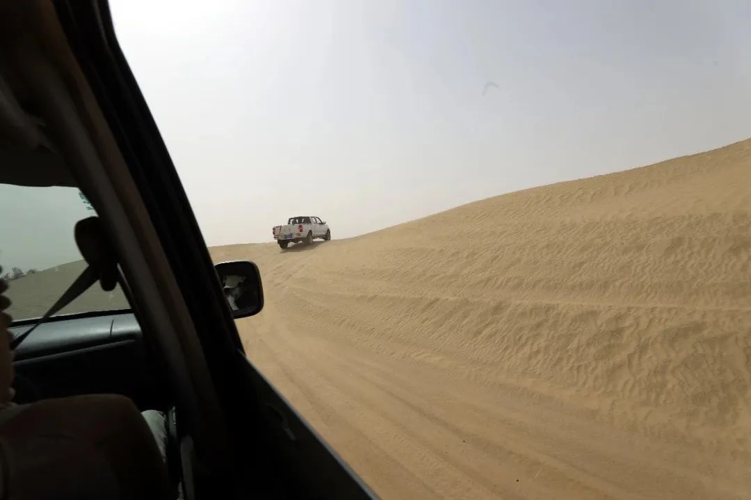 午后的沙漠气温仍在30℃以上,车内温度超过50℃。