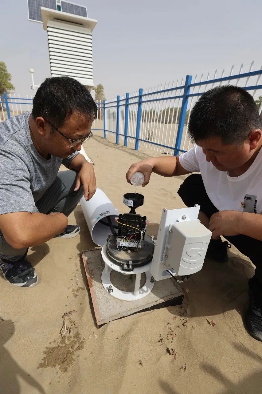 加盖翻斗式雨量传感器、清洁百叶箱和温度湿度传感器……这是各单位维护气象站常规动作,但在沙漠深处,一切都没有那么简单,维护自动站不仅是技术活,更是个体力活。汤博告诉我们,每次维护完回去,全身腰酸背痛,好几天才缓过来。