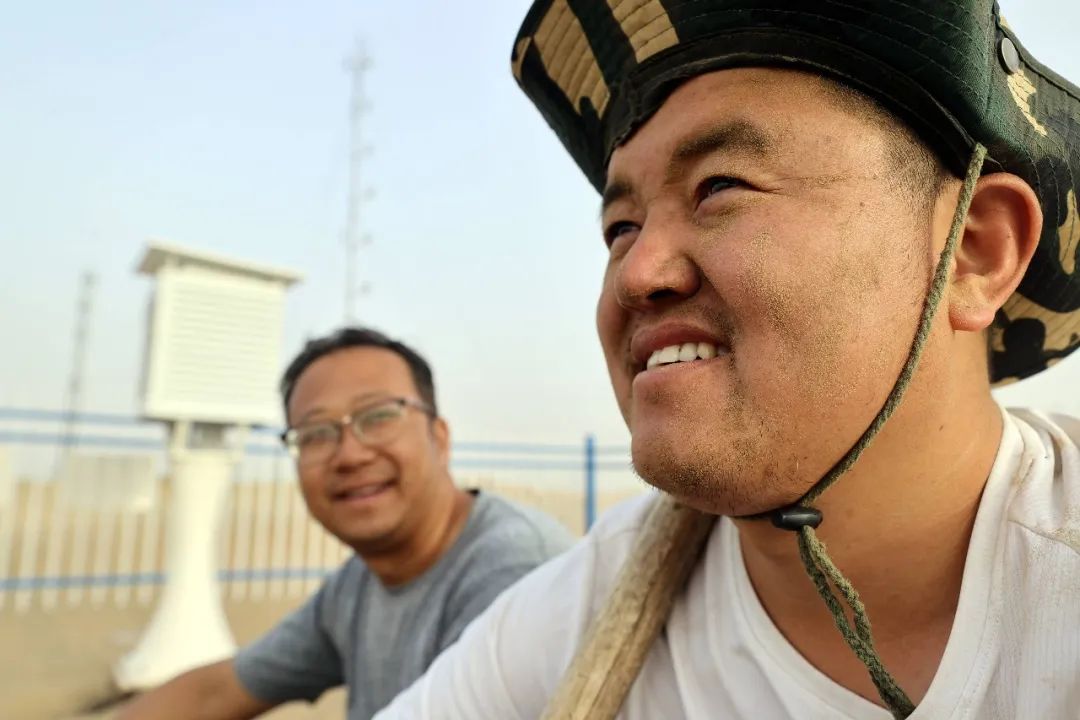 说不累是假的。但是,县气象局维护队伍和我们一样进出沙漠,还肩负着维护和清理观测场的任务,他们却感觉却浑身有使不完的劲,个个精神饱满、斗志昂扬。