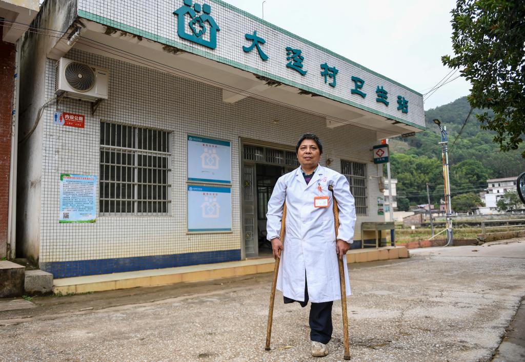广东省云浮市郁南县东坝镇大迳村是一个偏远山村,村里有一位“拄拐村医”郑仁才,靠着一个药箱、一副拐杖、一辆三轮车为乡亲们看病,一干就是30年。