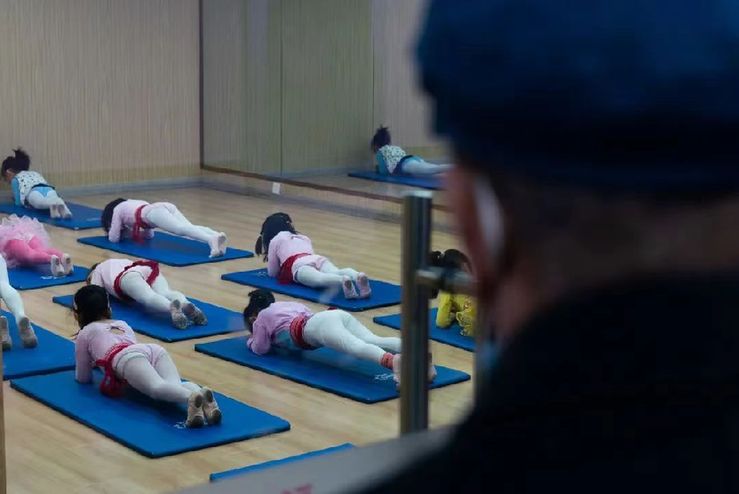 武汉某舞蹈教育培训机构内,家长正在教室外看着孩子练习舞蹈。长江日报记者胡九思 摄