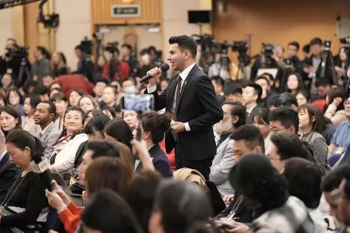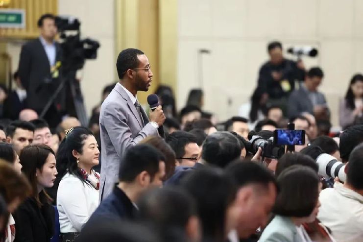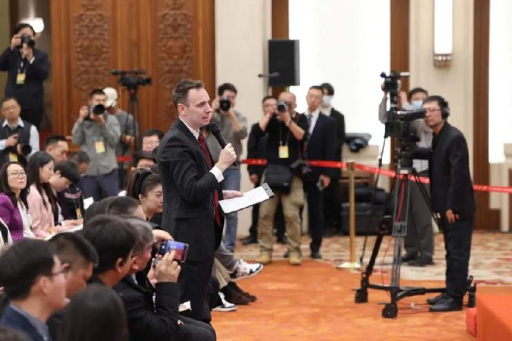 3月7日,外国记者在提问。新华社记者 王毓国 摄