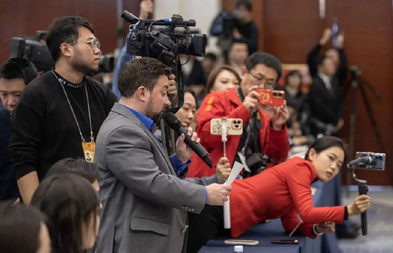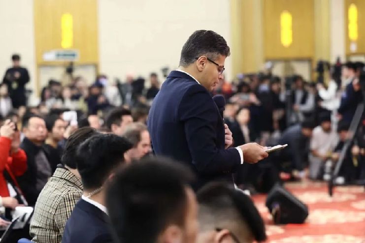3月3日,记者在发布会上提问。新华社记者 邢广利 摄
