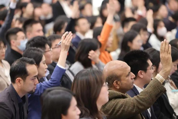 3月7日,外国记者在记者会上提问。新华社记者 刘续 摄