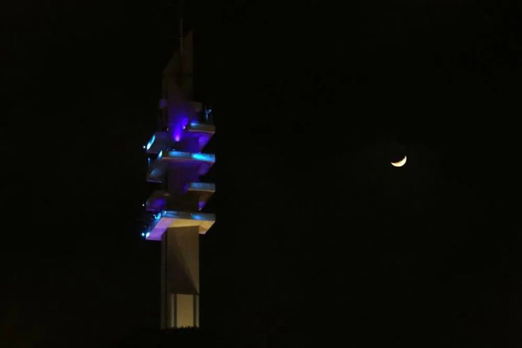 倒计时结束前4小时,人群散去,留下一轮新月悬在以色列国防部大楼旁。