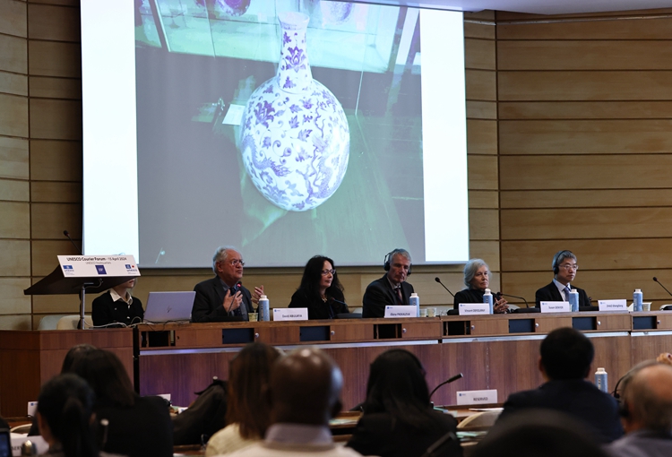 图片4月15日,在位于法国巴黎的联合国教科文组织总部举行的“文明交流互鉴理念国际研讨会”上,中外嘉宾参加“丝绸之路:人类文化交流的璀璨乐章”分组讨论。