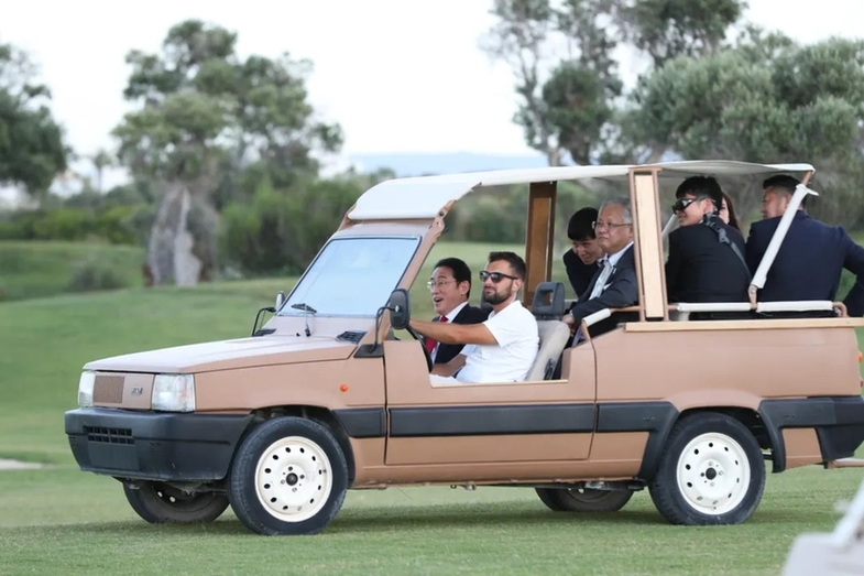 与此同时,博尔戈·埃尼亚齐亚度假村上空乌云密布,精心安排的跳伞表演面临“泡汤”的风险。但经过漫长的等待,夕阳最终将天空撕开一道口子。紧接着,各国领导人坐着豪华小车登场。