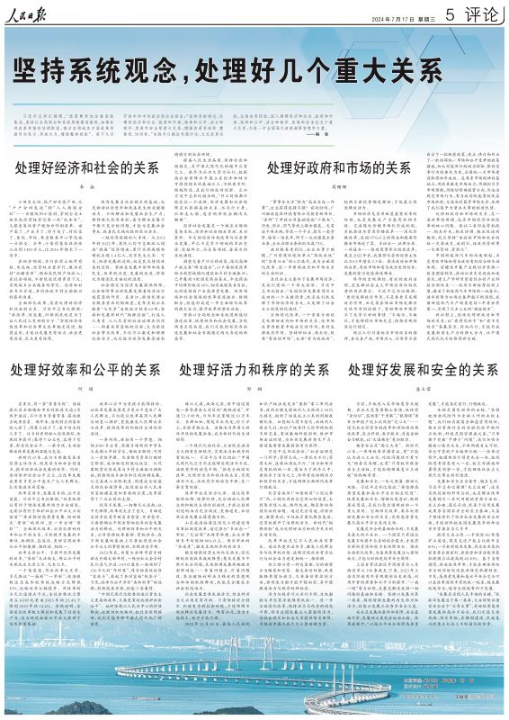 人民日报推出整版专题评论《坚持系统观念,处理好几个重大关系》。