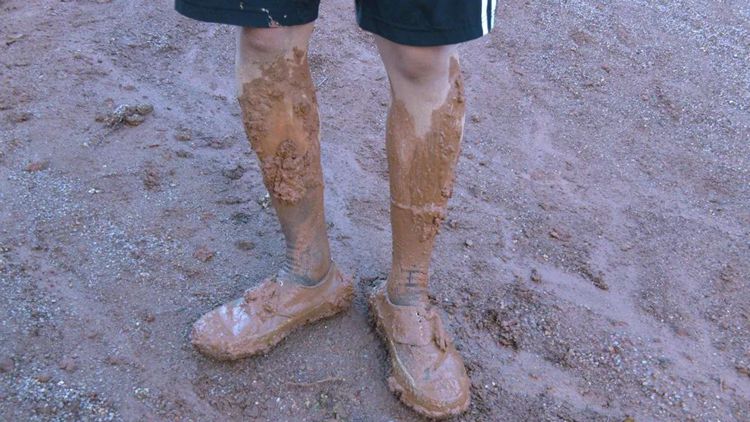 除了陡坡,还有深至膝盖的淤泥,让我们寸步难行。