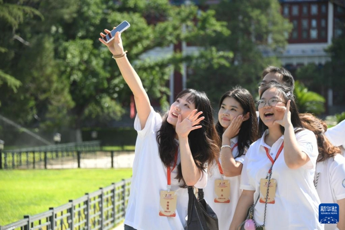 8月28日,参加第三十届海峡两岸大学生新闻营的学生们在北京大学拍照留念。
