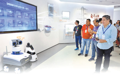 2024“一带一路”媒体合作论坛联合采访团成员参观南方电网数字化成果展览。本报记者 蒋雨师摄