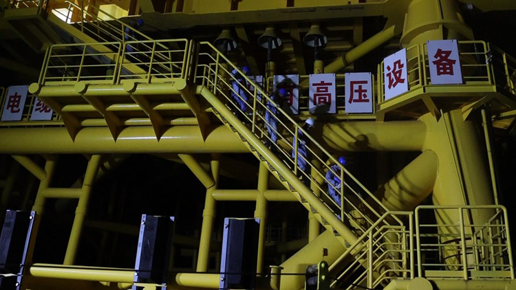 完成风机巡检维护后,我们迎着落日来到海上升压站。海上升压站是海上风电场的“心脏”,V场址71台风机发出的电能全部在此汇集、升压,再通过海底电缆送入千家万户。这里面积大、设备多,工作人员始终保持严谨的态度,把每一次巡检都当作是第一次,杨场长回忆起自己最长的一次出海经历,在升压站待过40多天,当时的“野人”形象至今记忆犹新,从“旱鸭子”到“海鸭子”的蜕变,是背后近2000次的出海经历。