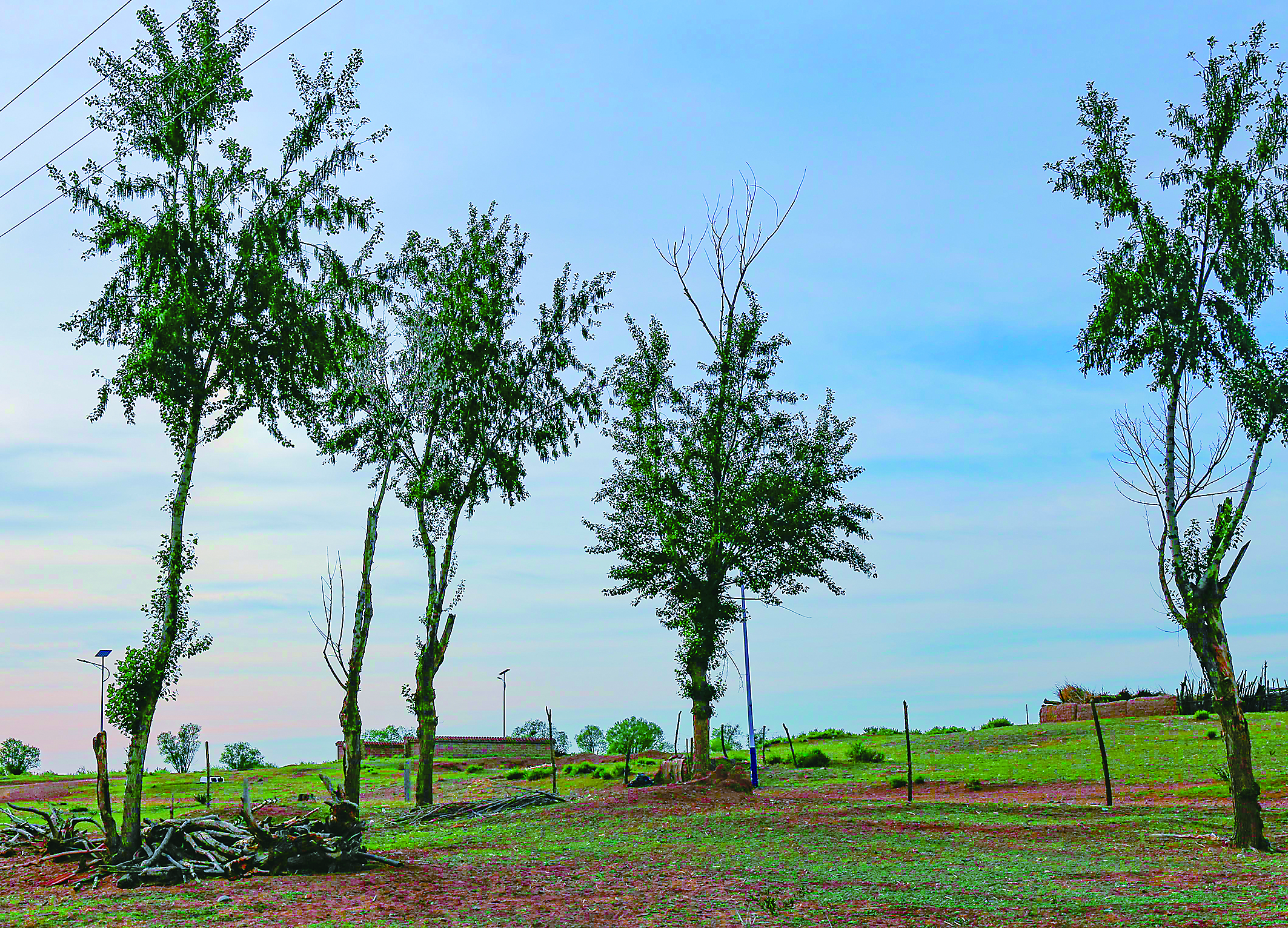 你不会太留意阿门其日格的树——最常见的旱柳,细长的枝条不成比例地斜生在粗矮的树干上;同样常见的白杨,也略显干瘦,但向天挺拔,似乎在倔强地宣示:树,哪能向风沙低头?