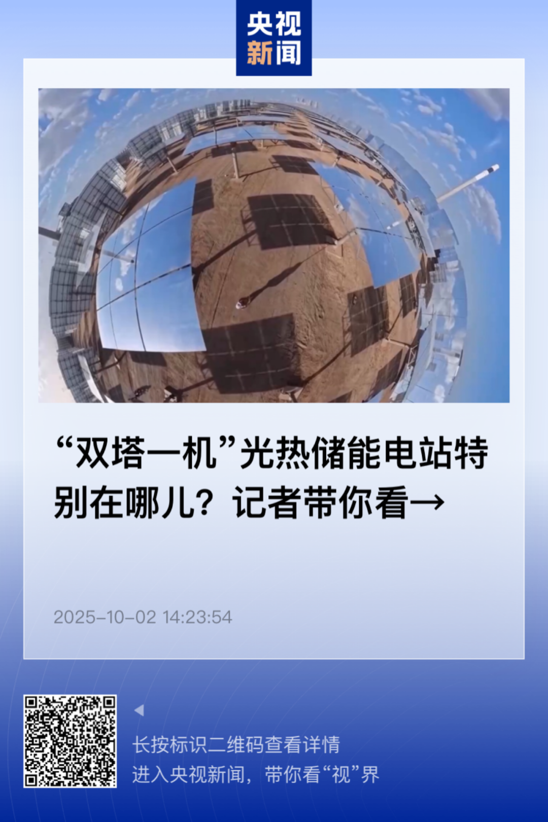 国庆期间,中央广播电视总台直播团队奔赴甘肃酒泉瓜州,记录全球首个“双塔一机”光热储能电站全系统试运行。