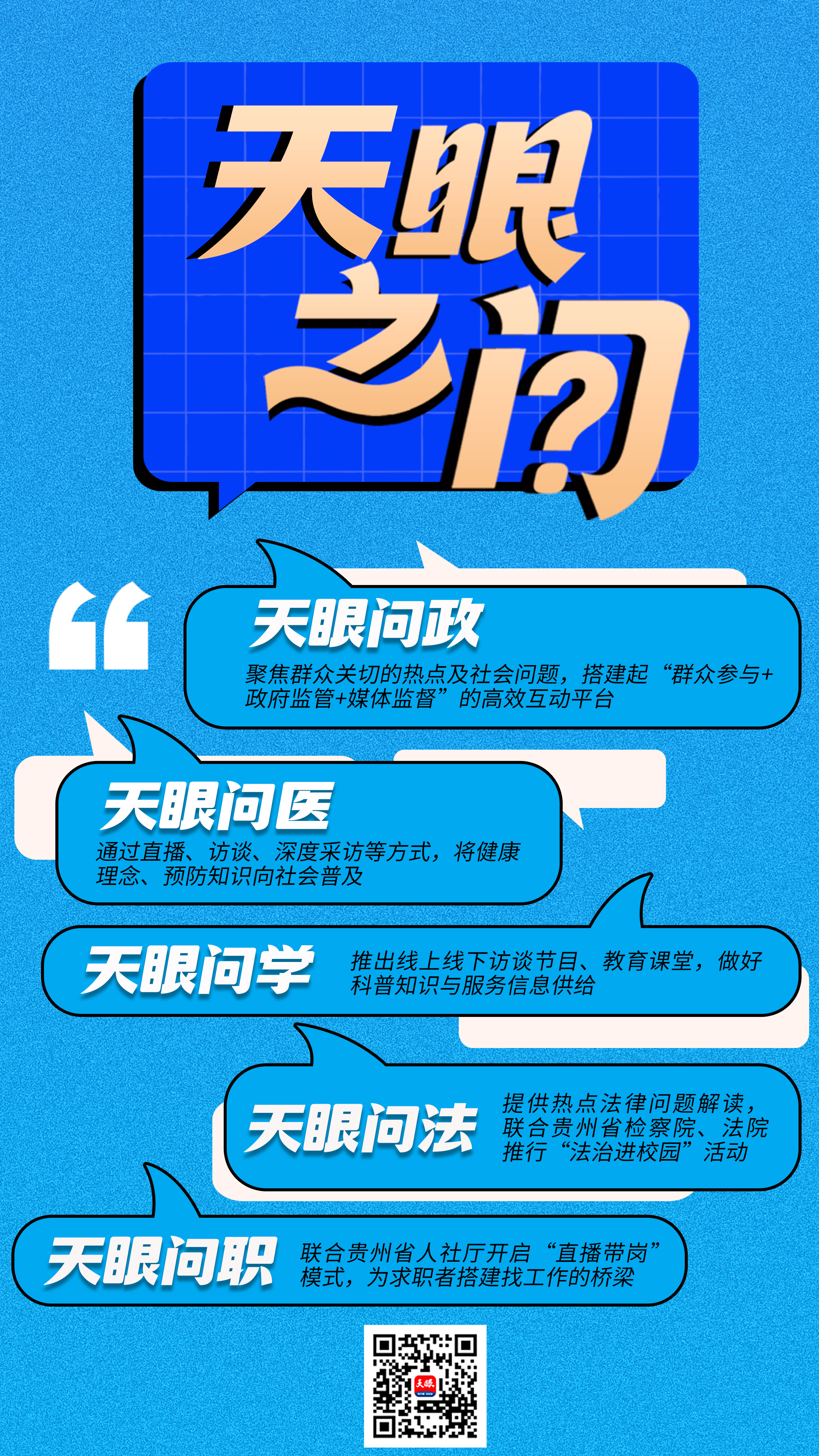 “天眼之问”是贵州日报报刊社打造集留言、问政、咨询、服务于一体的全媒体民生互动平台。平台涵盖问政、问医、问法、问学、问职等多个栏目,以“新闻+政务+服务”为运作模式,构建起“群众参与+政府监管+媒体监督”三方联动互动机制。民生问题得到有效响应,实现民声有回音、诉求能落地。