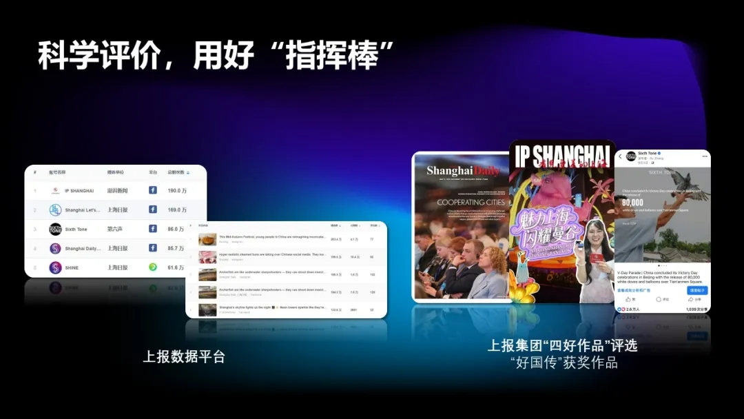 集团数据平台采集和分析范围涵盖脸书、油管、X、INS、Scooper等境外社交平台,为国传内容生产、运营决策、绩效考核提供量化参考。强化激励引领,以“好机制”催生“好内容”。今年5月起,集团组织开展“四好作品”评选,在中宣部“三好作品”类目基础上,我们增设了一项“好国传作品”,参评的重要指标是自有账号在海外平台上的传播数据。迄今评出上报好国传作品6件,海外平台传播量总计近600万次,其中单件作品最高为150万次。