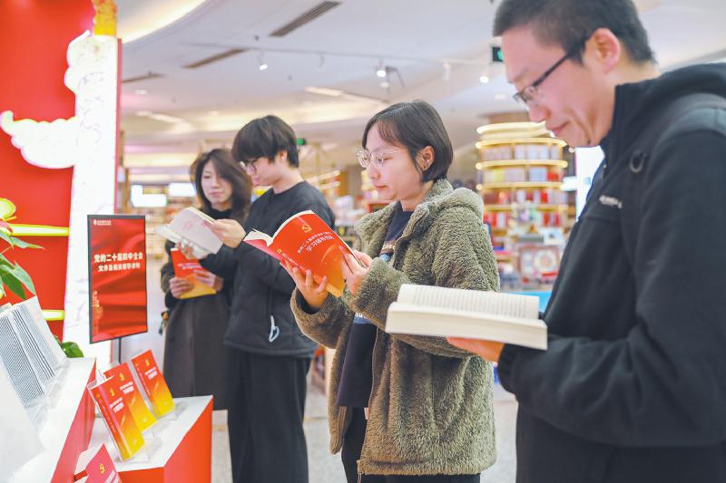 11月11日,北京图书大厦一层,党的二十届四中全会文件及学习辅导材料吸引读者驻足翻阅。 北京图书大厦 供图