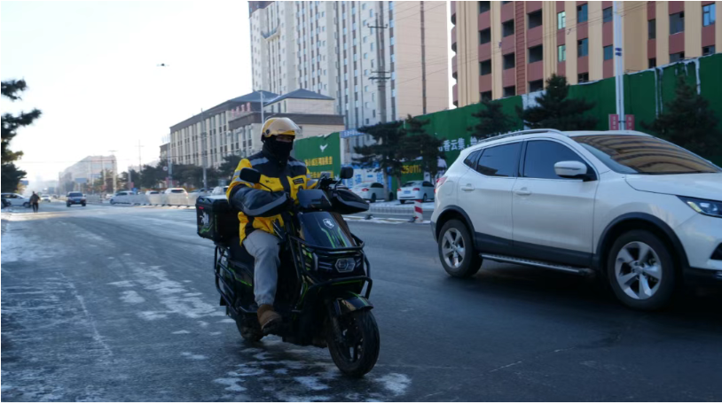 郝宝阳回归外卖小哥的送餐日常。内蒙古开鲁县融媒体中心记者 张美娜 摄