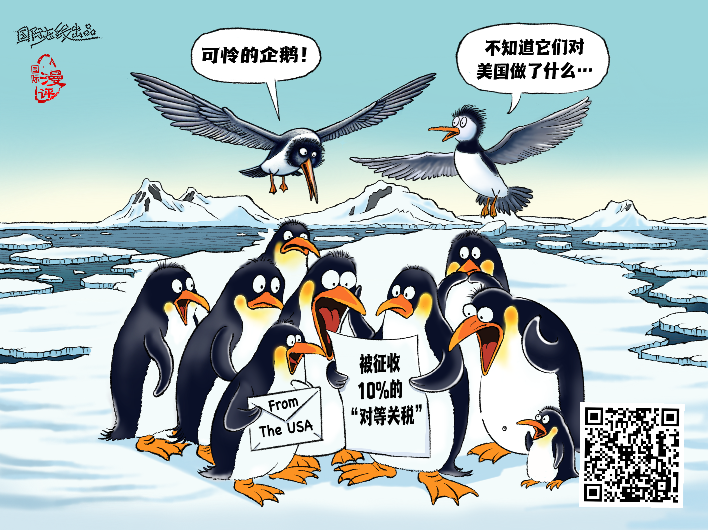 此标题以幽默讽刺手法瞬间抓取受众注意力,与漫画内容相得益彰,直击美国滥施关税做法的荒谬性。标题极其简短,趣味性强,符合国际传播受众的阅读习惯和兴趣点。