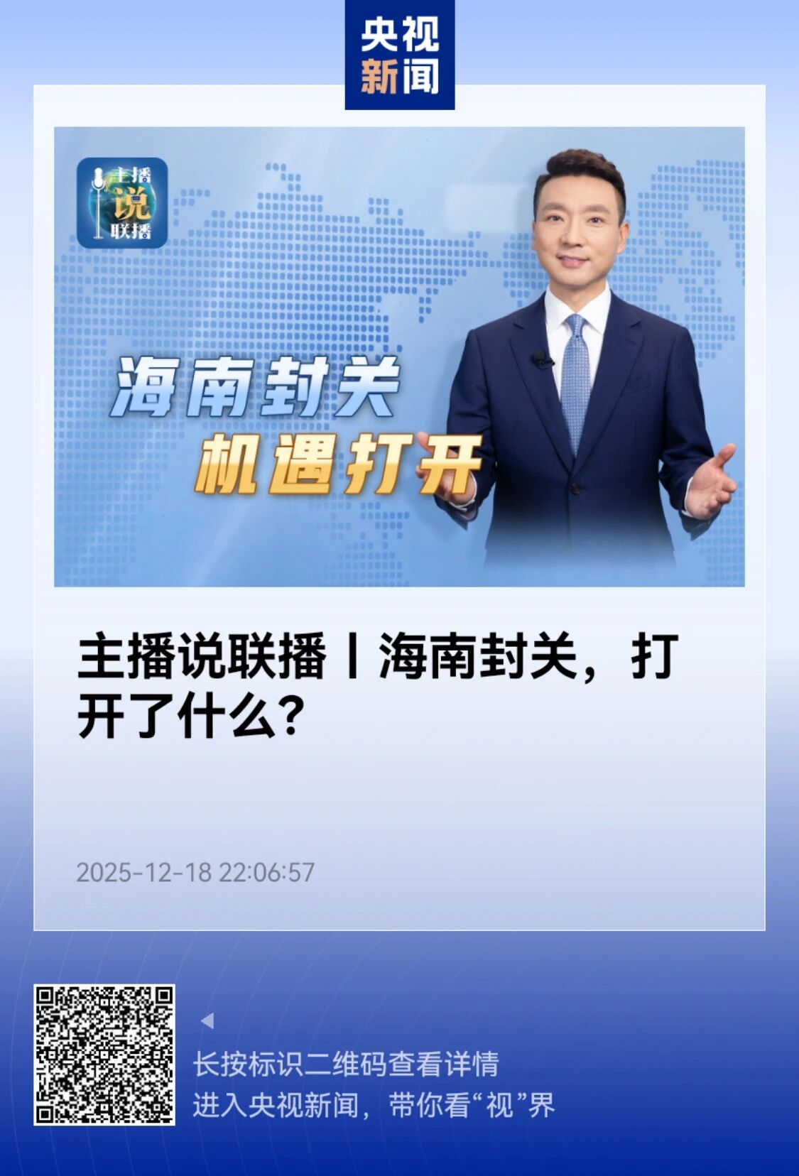 此标题直奔主题,“海南封关”直击当下重大政策热点,“打开了什么”以设问句式引发受众好奇。“封关”与“打开”相对应,简洁有力,既贴合《主播说联播》栏目的通俗化解读定位,又以强烈的语言张力抓住受众注意力,实现了政策传播专业性与大众可读性的有机统一。