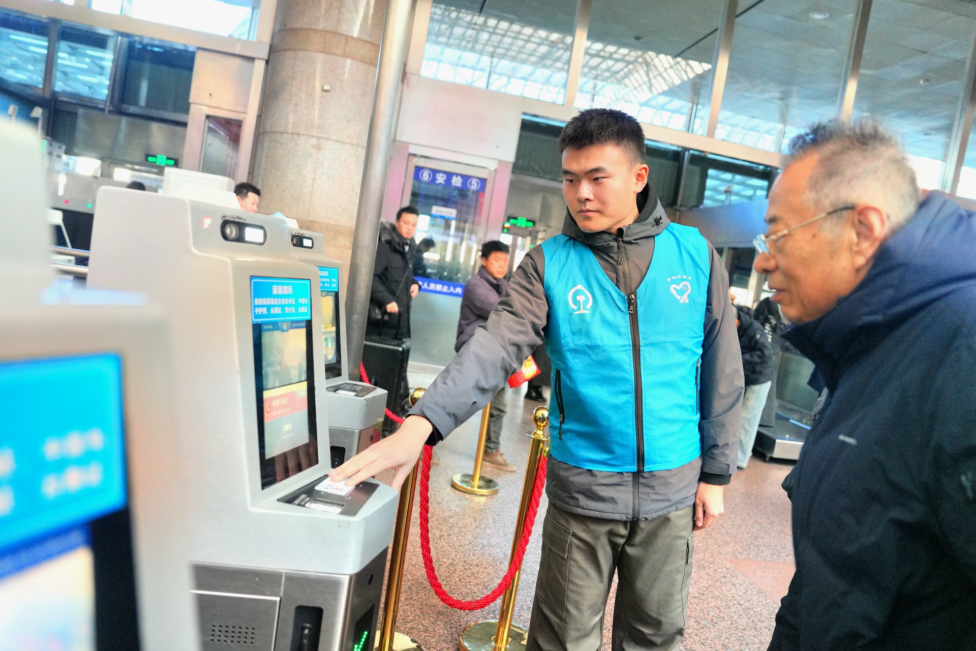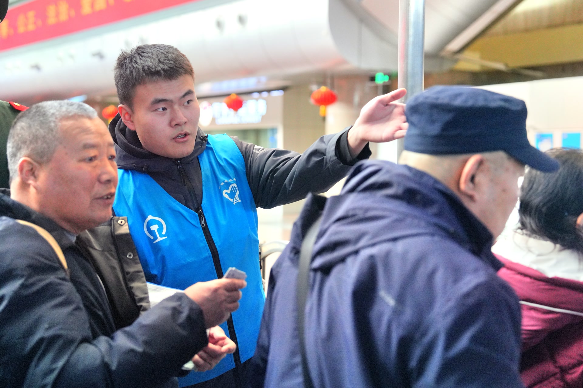 抵达对应检票口时,客流已经不多。看两个小伙子顺利进站,蒋戈乐松了口气,跟记者解释:“我在北京西站志愿服务了3年春运,旅客的焦急有时候就写在脸上,细心点就能发现。”