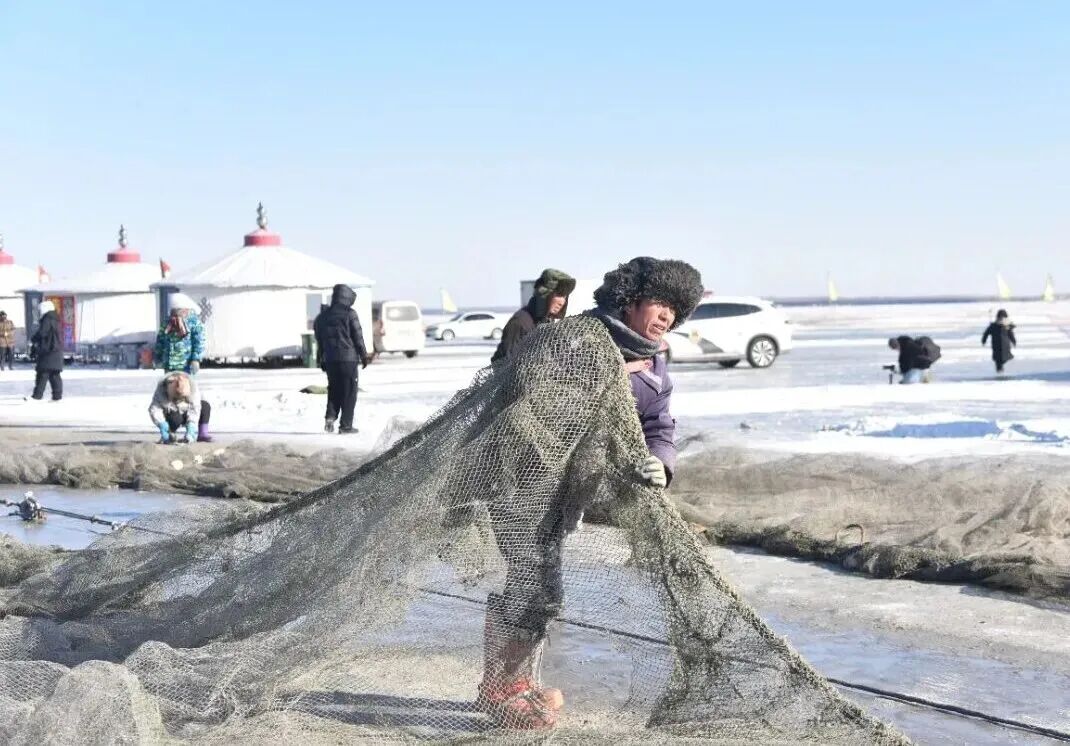 她是土生土长的查干湖人,大学毕业后定居长春。因为想家,她开始在各种冬捕直播画面里寻找父亲的身影。切换了四五个官方直播间、看了好几个游客的直播,她说:“我知道他就在那儿,但人很多,湖面又那么大,不好找。”