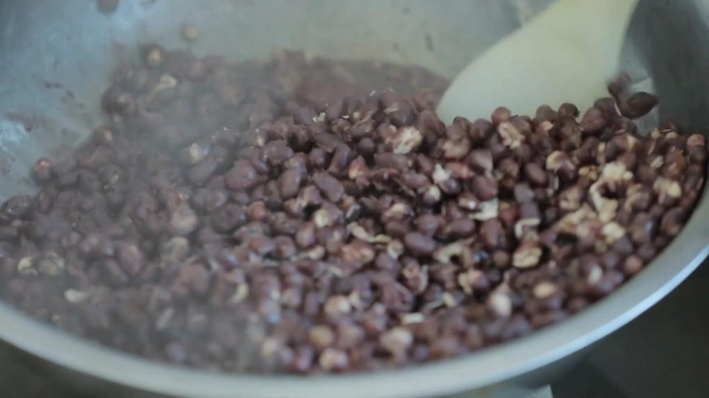 黏豆包的馅料选用本地出产的颗粒饱满的红豆,先放入大锅慢蒸,直至绵软香甜,再手工碾压成团,最大程度保留豆子本身的自然甘醇。