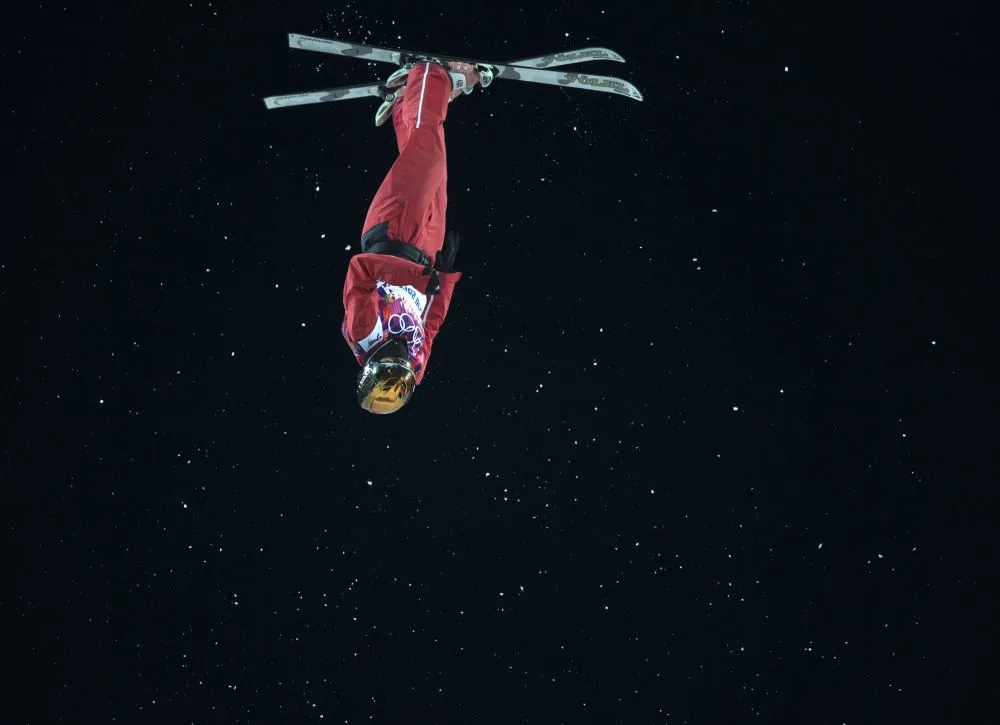 2014年2月14日,徐梦桃在索契冬奥会自由式滑雪女子空中技巧决赛中。新华社记者 费茂华 摄