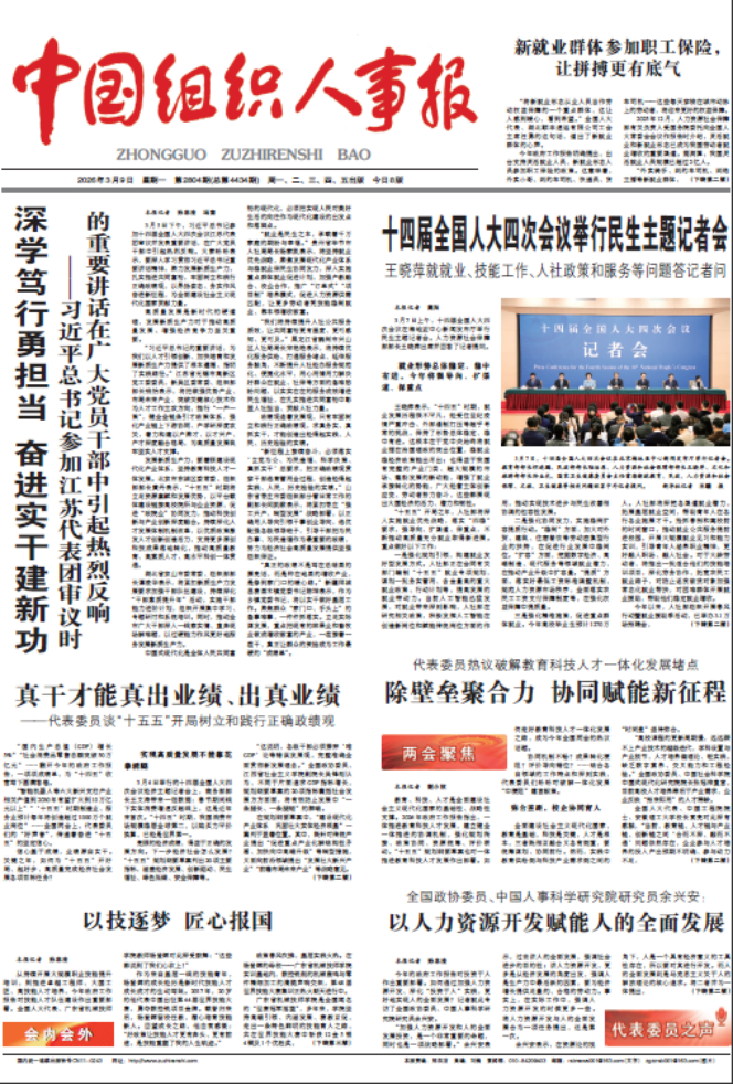 中国发展改革报社全平台报道习近平总书记重要讲话、重要活动,撰写两会时评《研究新情况 解决新问题 实现新突破》,引导社会各界深刻领会习近平总书记在参加江苏代表团审议时的重要讲话精神。中国组织人事报坚持组织人事宣传定位,围绕学习总书记关于“认真组织开展树立和践行正确政绩观学习教育,引导广大党员干部落实‘立党为公、为民造福、科学决策、真抓实干’总要求,创造经得起实践、人民、历史检验的实绩”的重要指示精神,采访地方党委组织部部长、人社局局长、基层党组织书记,推出《深学笃行勇担当 奋进实干建新功——习近平总书记参加江苏代表团审议时的重要讲话在广大党员干部中引起热烈反响》报道。